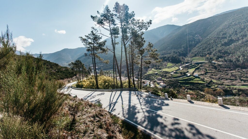 Daarna volgen de mystieke bossen van Sintra — eindeloze groene wouden waar smalle wegen zich door het landschap slingeren. De route klimt verder omhoog naar het dak van Portugal in de Serra da Estrela, waar een veelvoud aan panoramawegen overgaat in indrukwekkende bergtrajecten.
