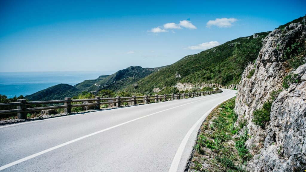 De route voert door heuvels begroeid met kurkeiken en olijfbomen, langs stuwmeren met bijna circuitachtige wegen en over kustpanorama’s rond Setúbal.